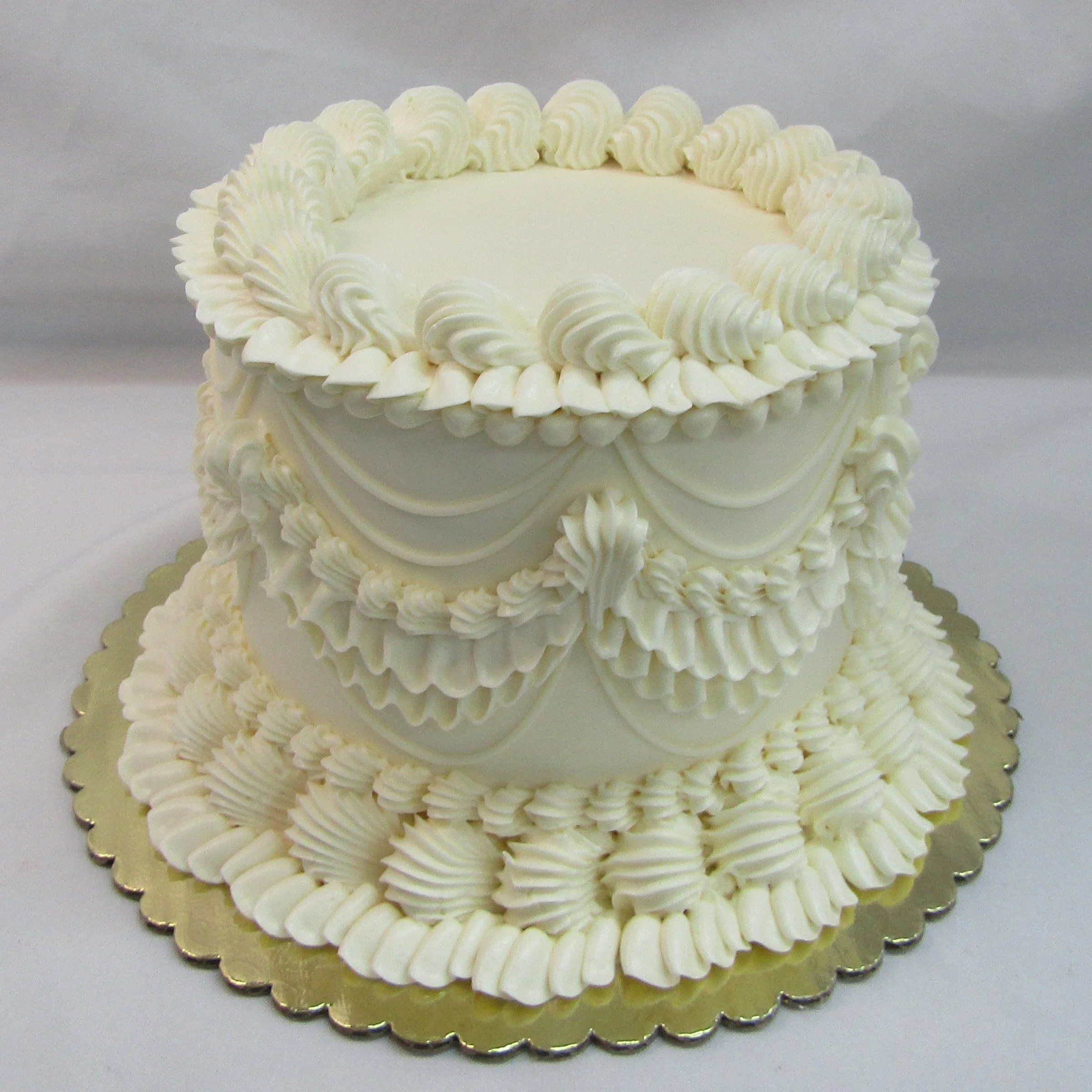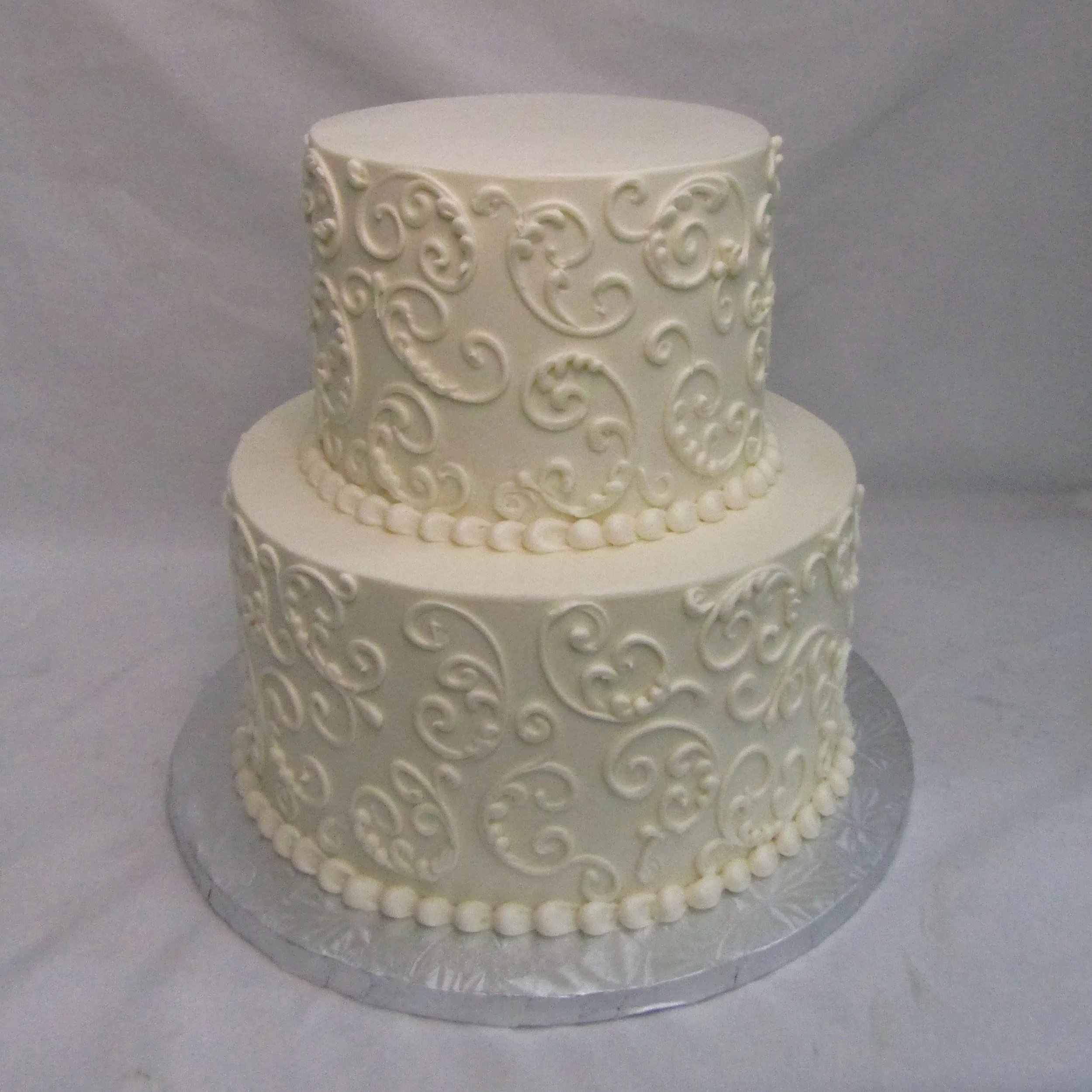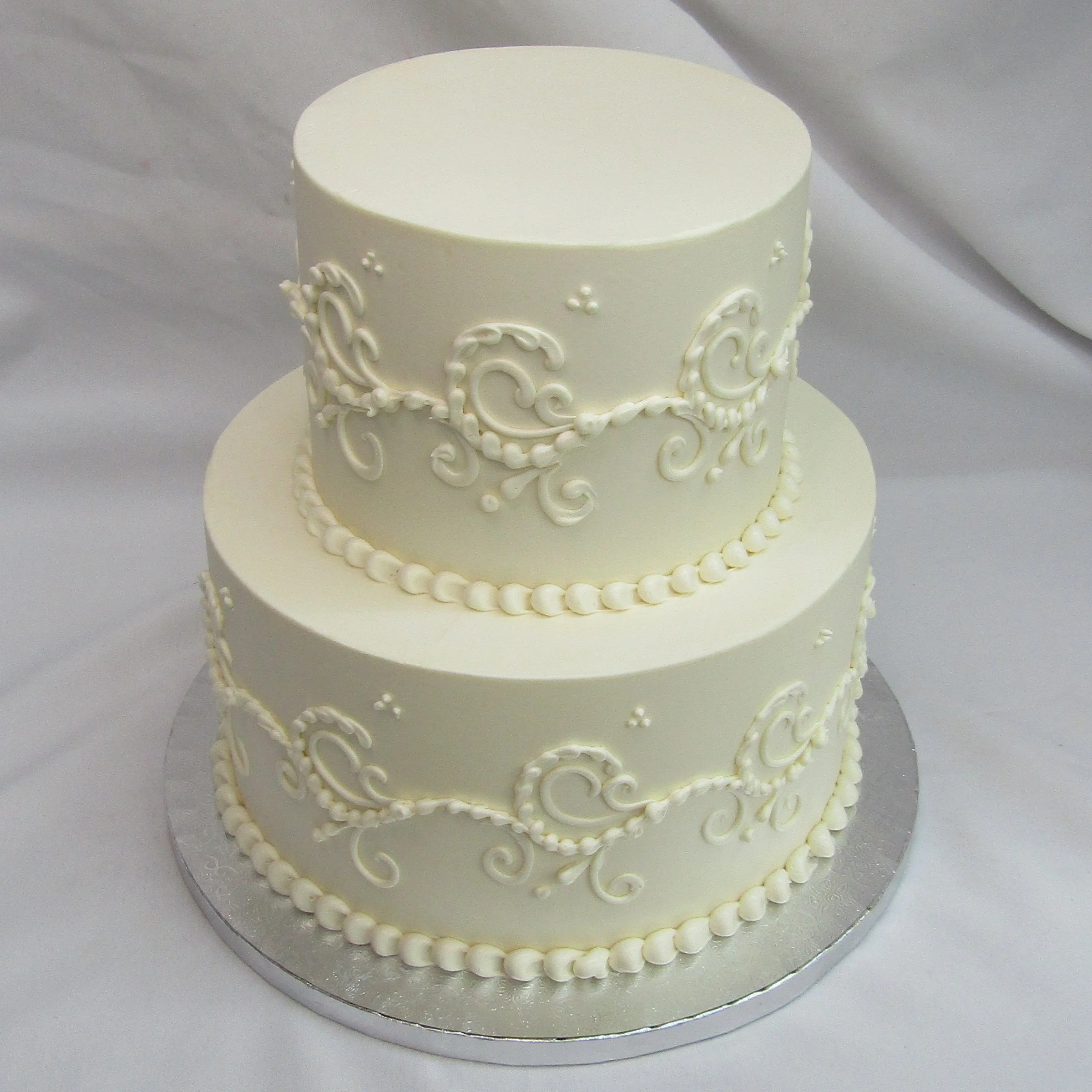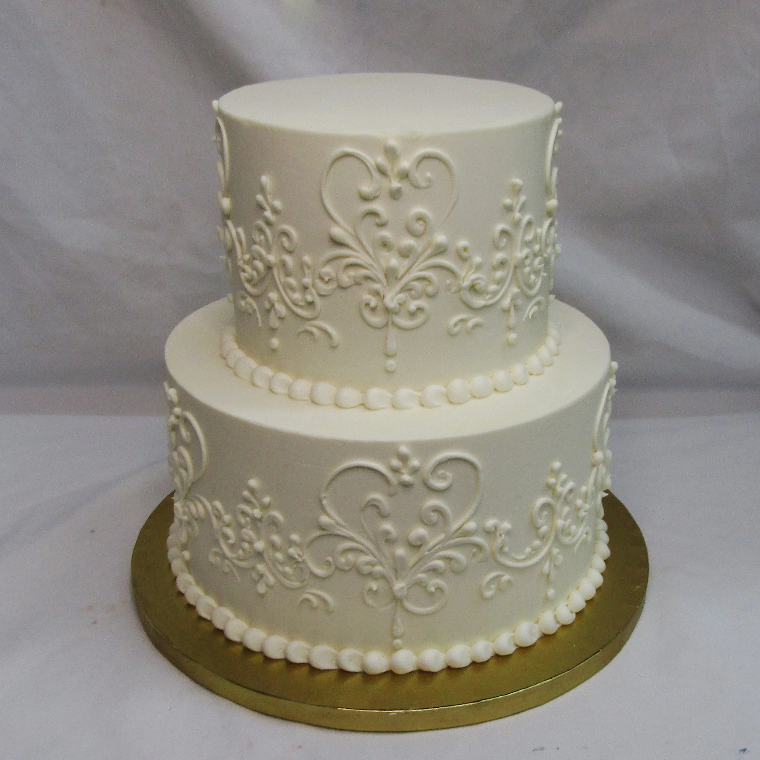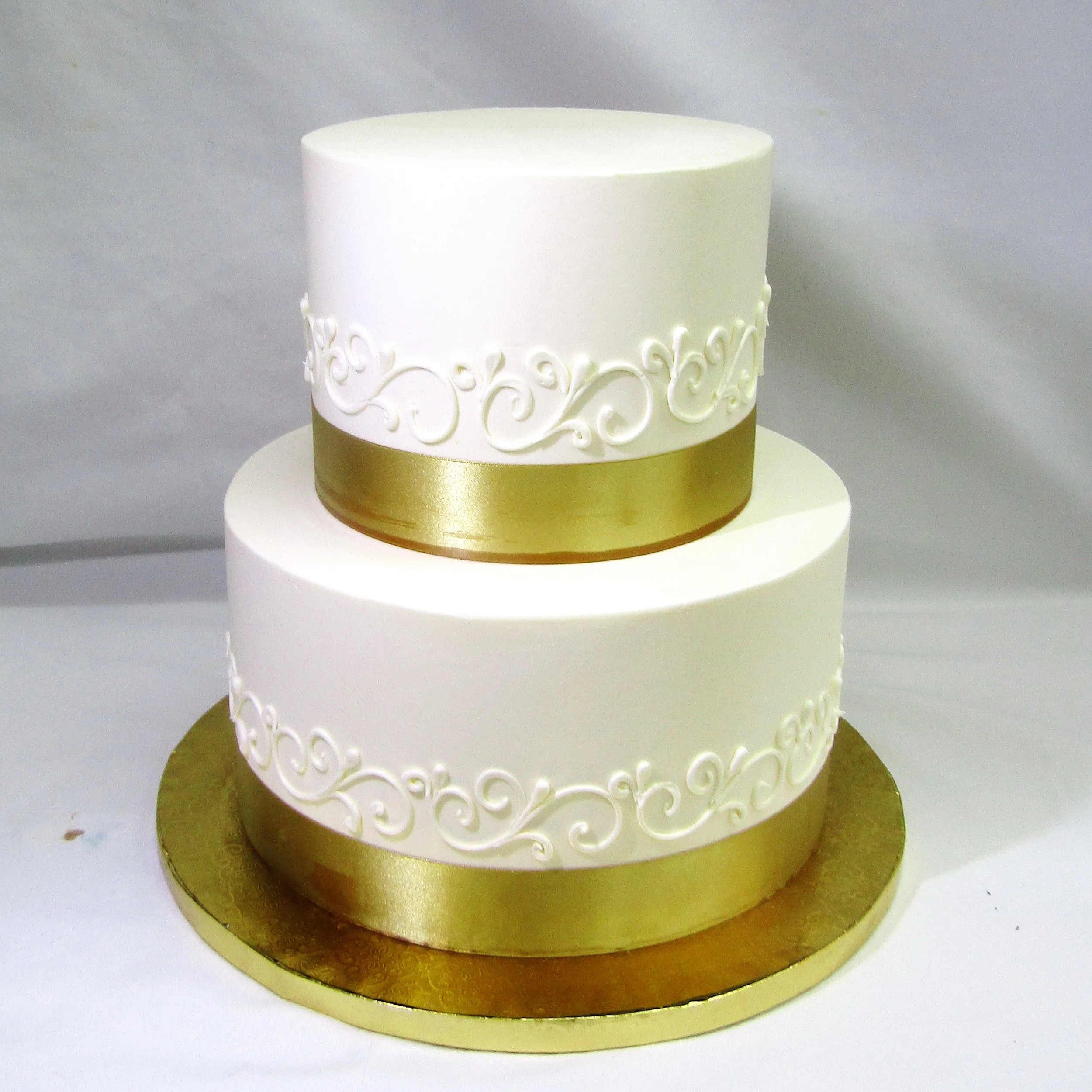 We offer beautifully designed one-tier and two-tier signature wedding cakes. These cakes feature set designs that are not customizable; however, you may choose your preferred background color and accent (decoration) colors.