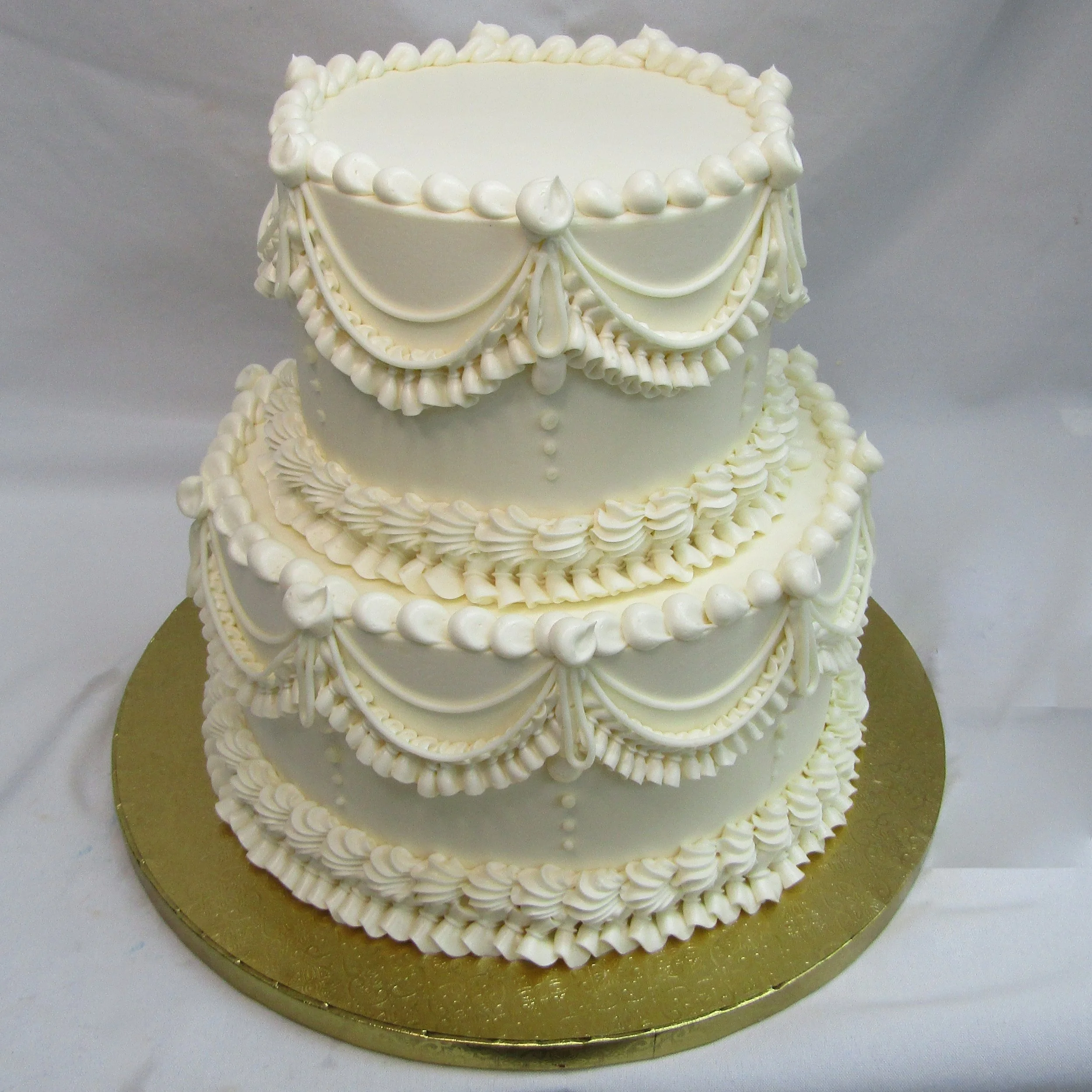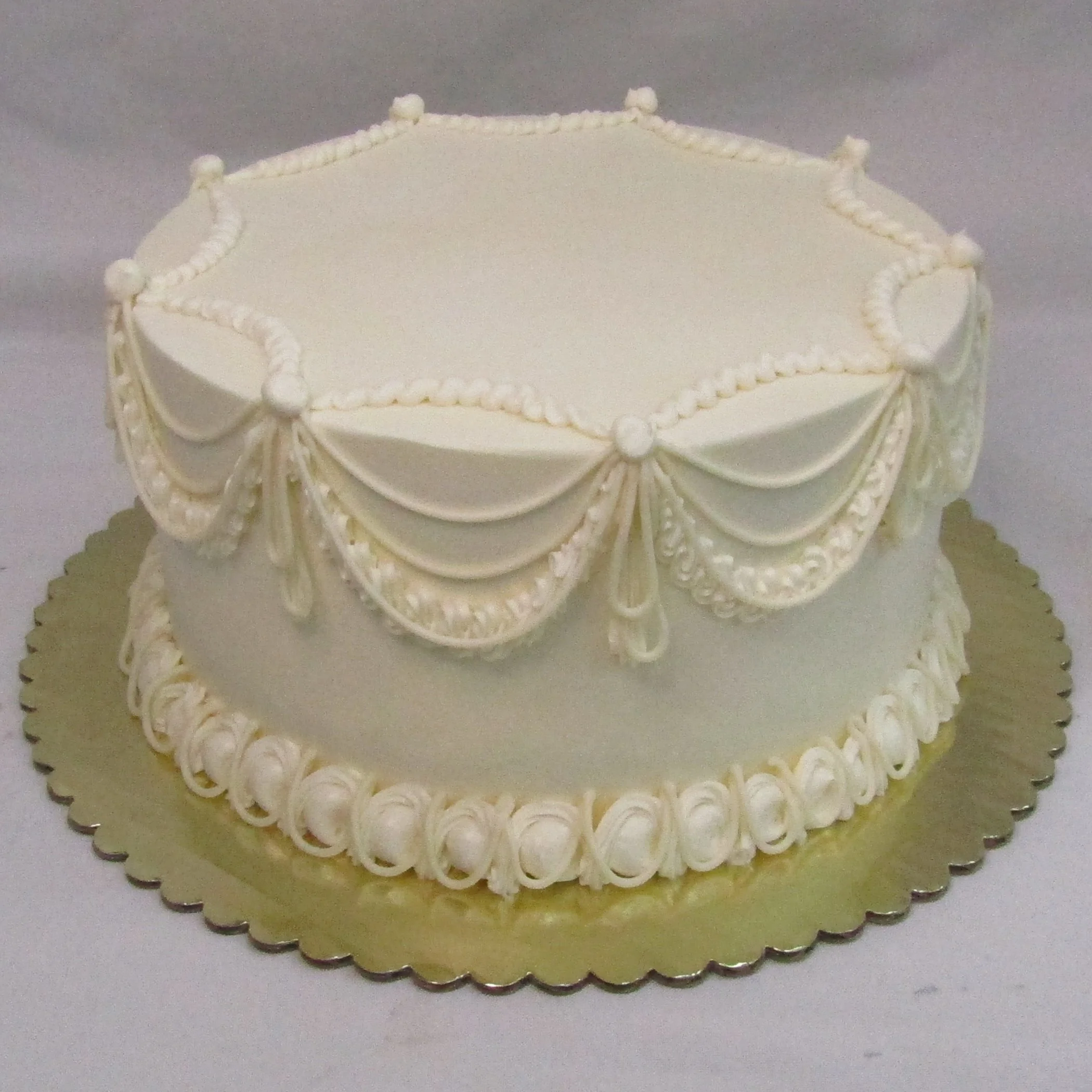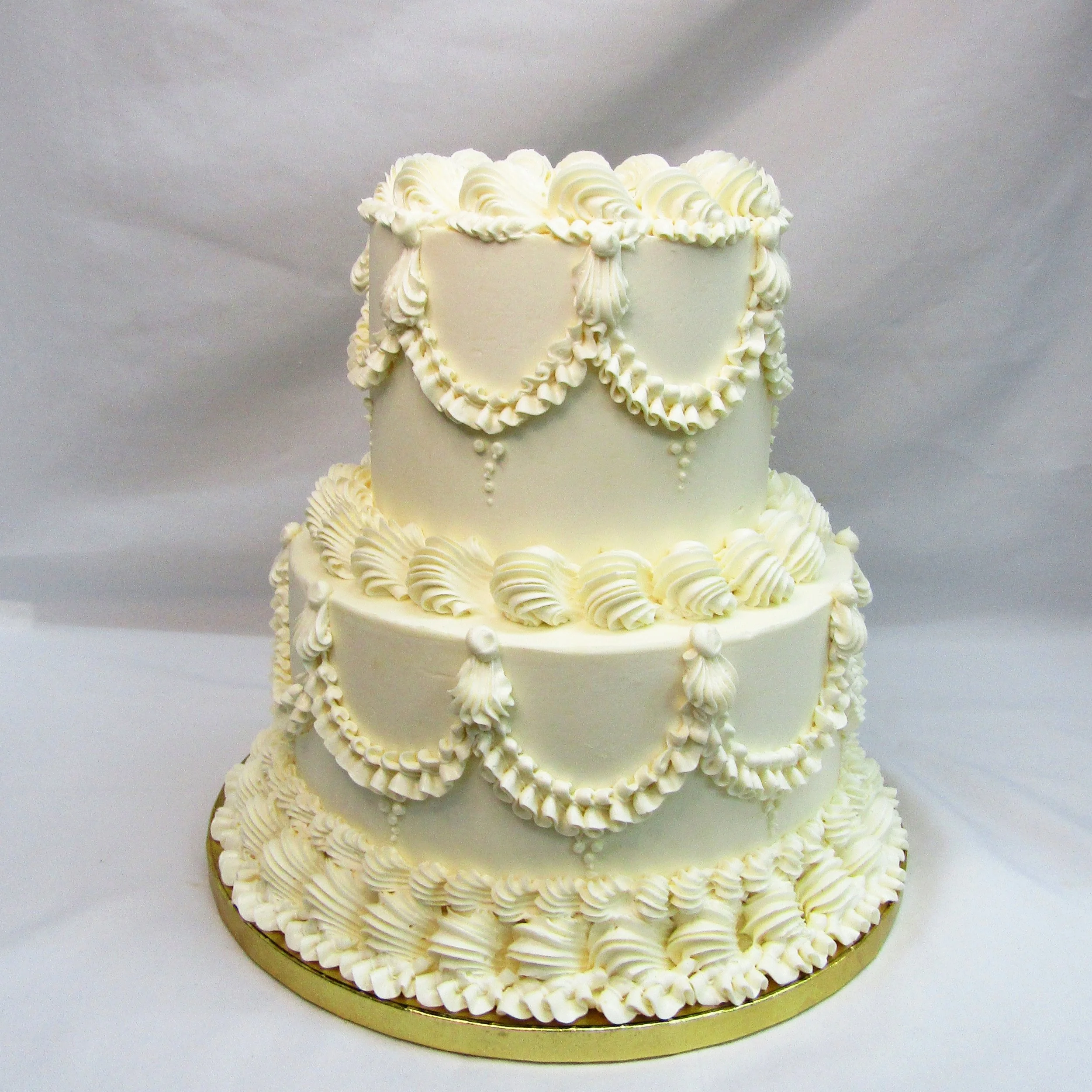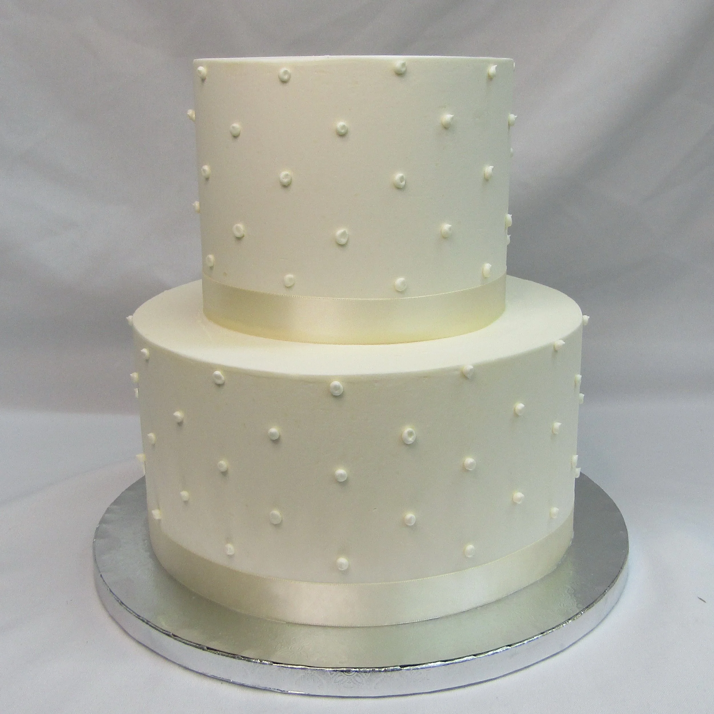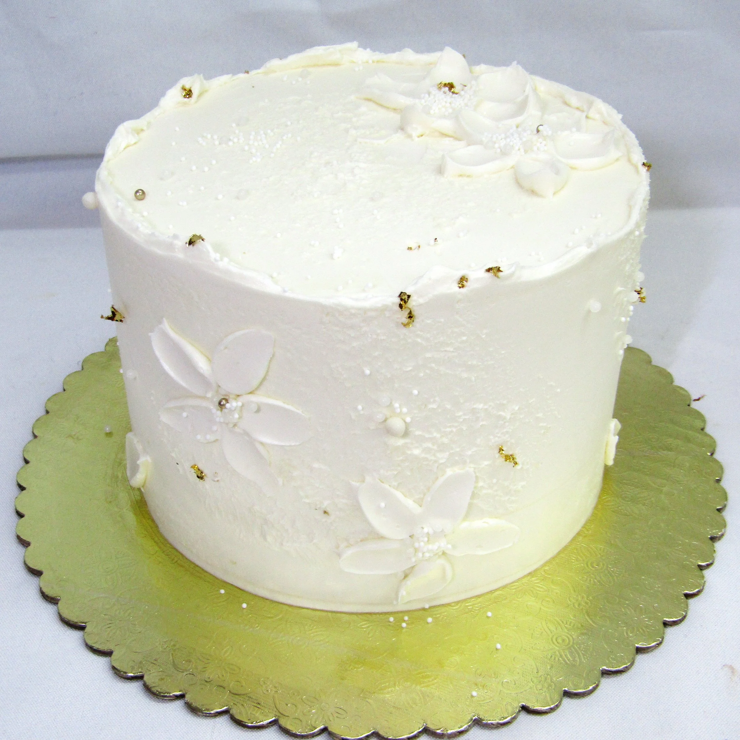 We offer beautifully designed one-tier and two-tier signature wedding cakes. These cakes feature set designs that are not customizable; however, you may choose your preferred background color and accent (decoration) colors.